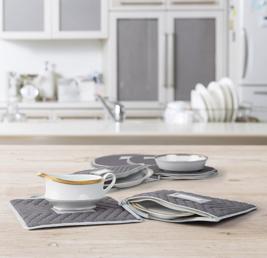 Keep your most delicate and treasured china serving accessories safe and pristine by storing them in this set of Microfiber China Accessory Storage Cases. Soft and plush quilted microfiber and self-correcting zippers make these cases ideal for storing serving platters. bowls. plates and saucers. A durable and practical dinnerware storage solution. the set of Microfiber China Accessory Cases is perfect for safe and reliable storage for your finest serving platters. bowls. and a creamer and sugar serving dish.